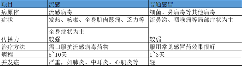 “普通感冒”和“流行性感冒”两者如何区分?