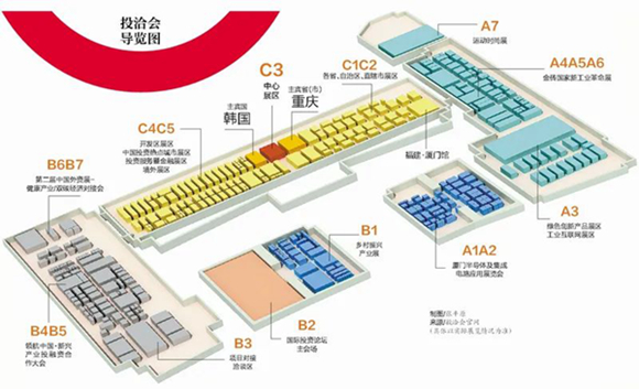 共有来自66个国家和地区的客商参会,展馆面积12万平方米,分设投资促进馆、产业创新发展馆和项目资本对接馆三大区域,13个展区。