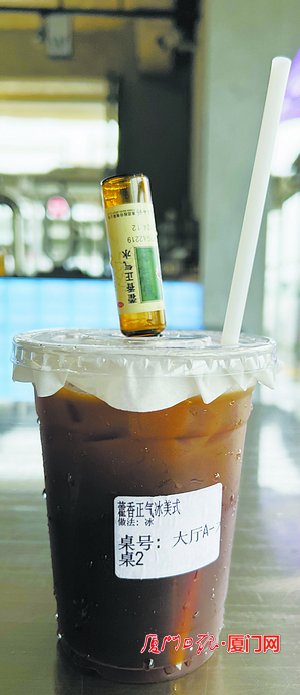 厦门网讯 (文/图厦门日报记者 张玉榕)最近,一款“藿香正气冰美式”凭借其“中西结合”的特征在网络上悄然走红。藿香正气冰美式——在冰美式咖啡中加入一支藿香正气水,号称可以提神醒脑、防秋乏、防瞌睡。