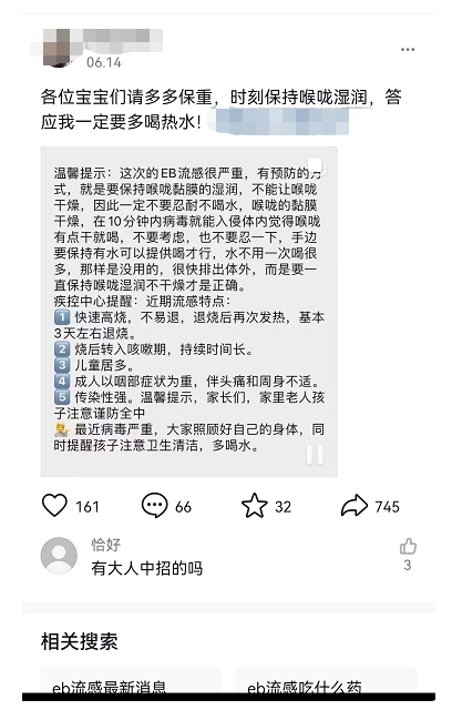 福建人朋友圈疯传:EB流感很严重?真相来了