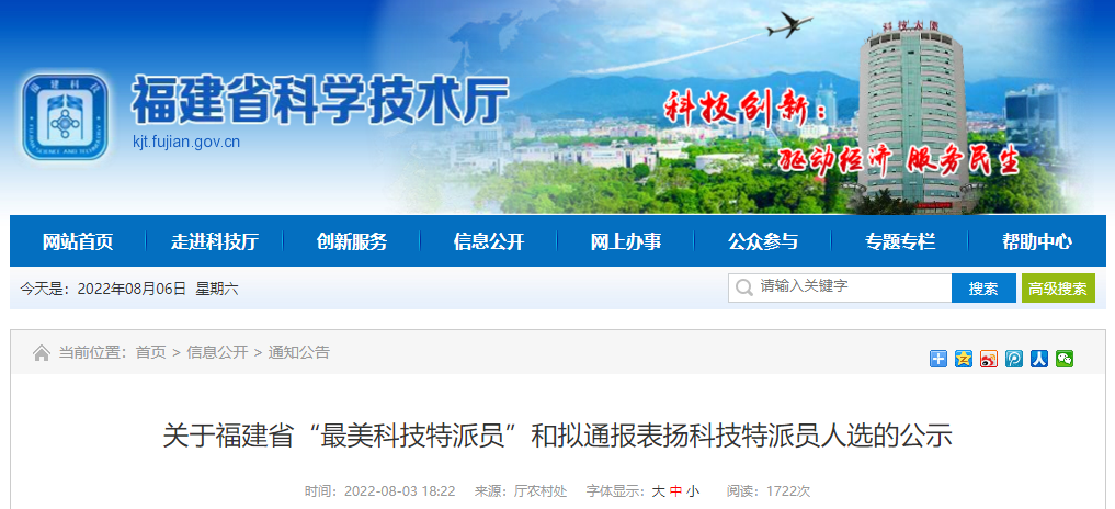 共200人!福建省“最美科技特派员”和拟通报表扬科技