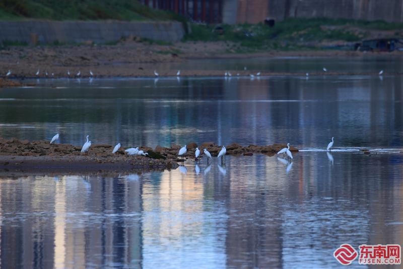 建瓯市建溪河的河滩上白鹭正在翩翩起舞 郑雄增/摄