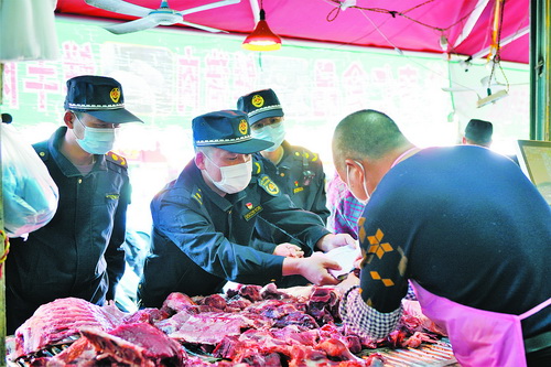 “您好,杂物不能堆放在店外,这违反了‘门前三包’相关规定。”昨日上午,在同安区城西农贸市场附近,市容市貌整治推进现场会同样显得“不客气”——同安城管执法队员发现一家肉店“门前三包”存在问题后,立即上前开具整改通知单,并进行文明劝导。