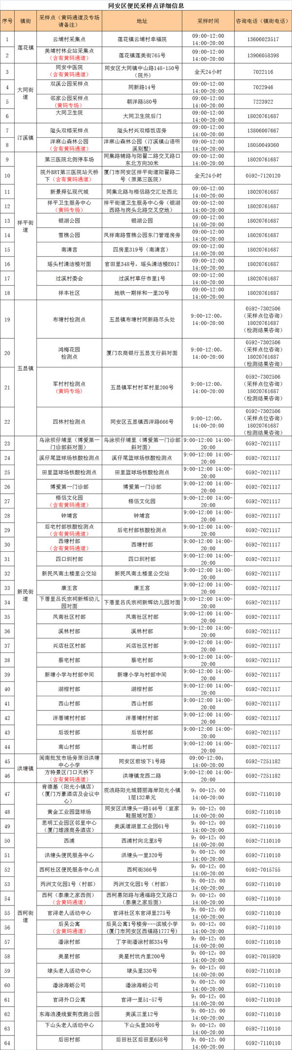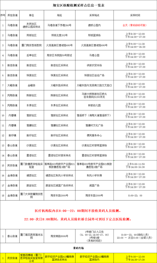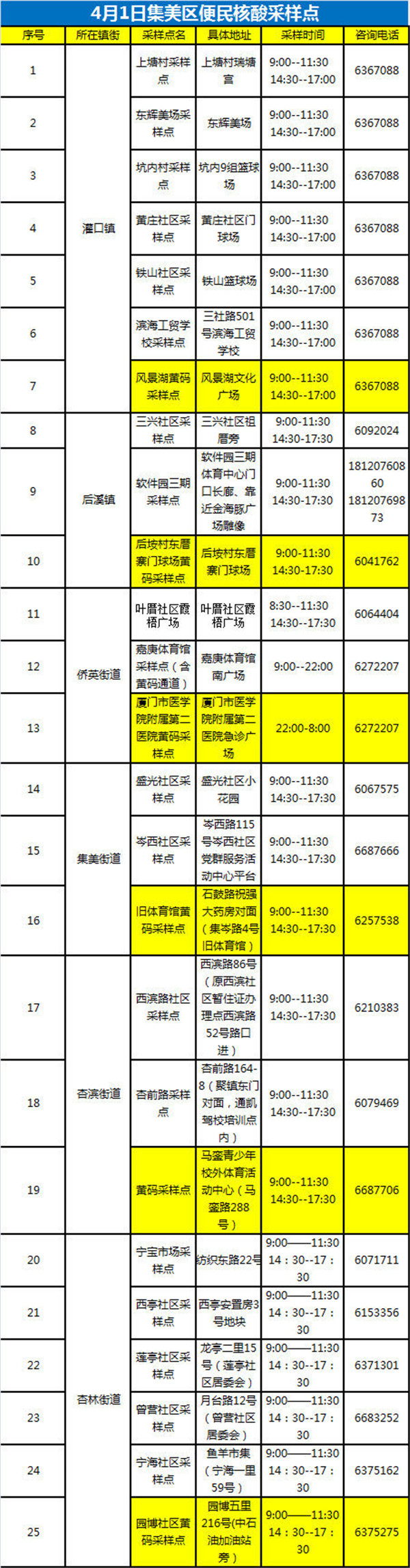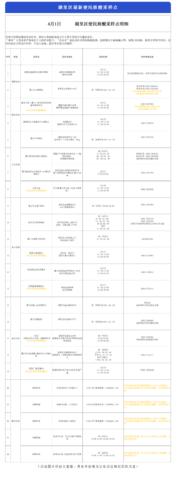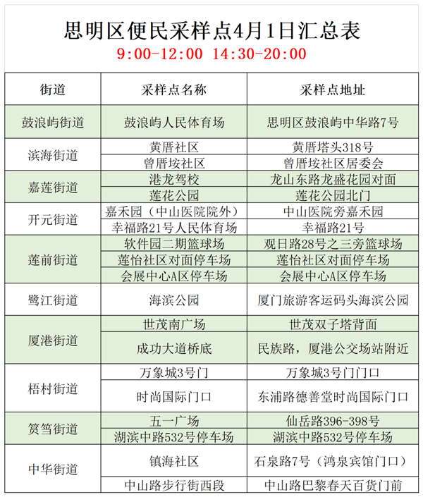 4月1日便民核酸采样点汇总