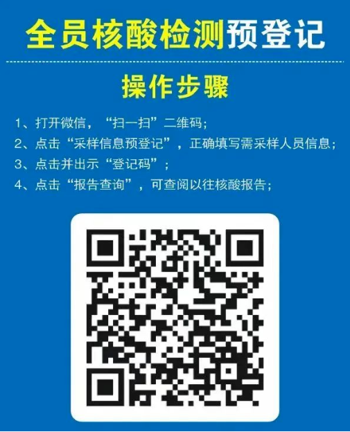 (一)请区域内人员按照社区的通知,携带本人有效身份证件和预约登记码,佩戴好口罩,前往采样点有序参加核酸采样;可提前关注“天下集美”公众号或听从社区安排扫描二维码,为本人及家人进行预登记,可有效缩短排队等候时间。