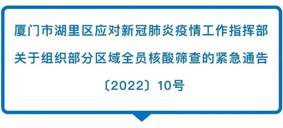 最新调整!湖里区开展部分区域全员核酸检测