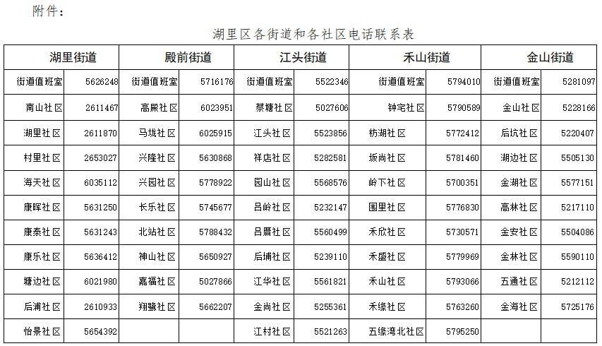附:湖里区各街道和各社区电话联系表
