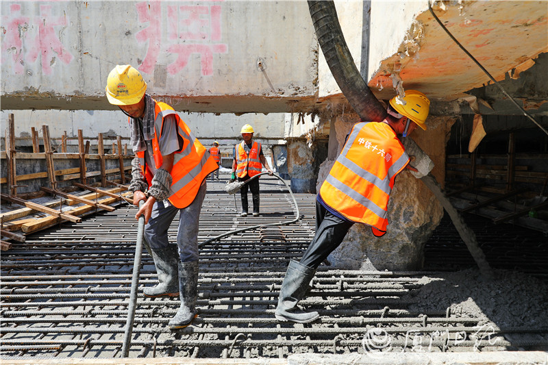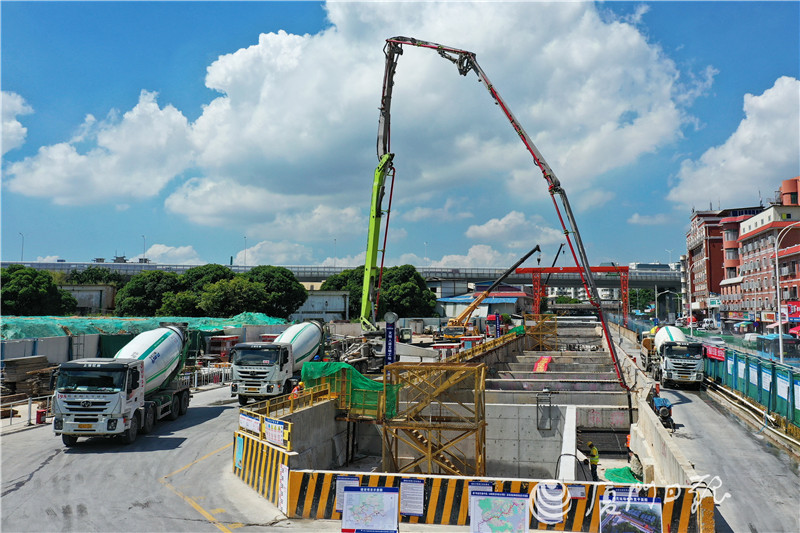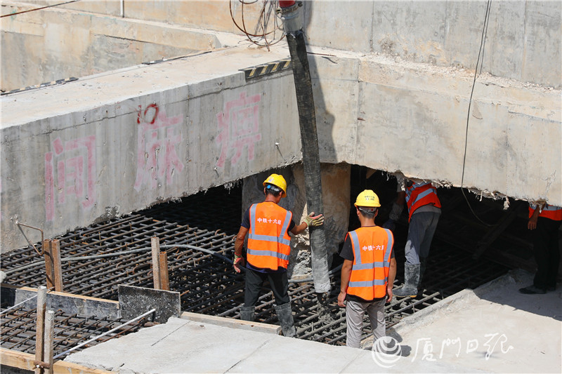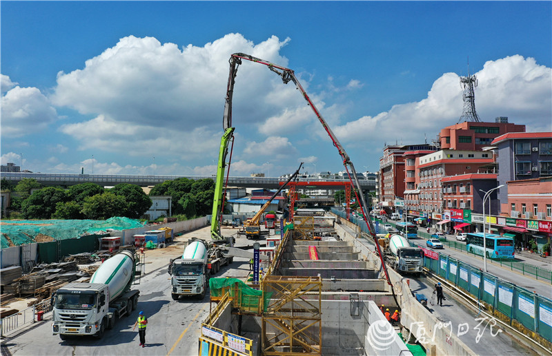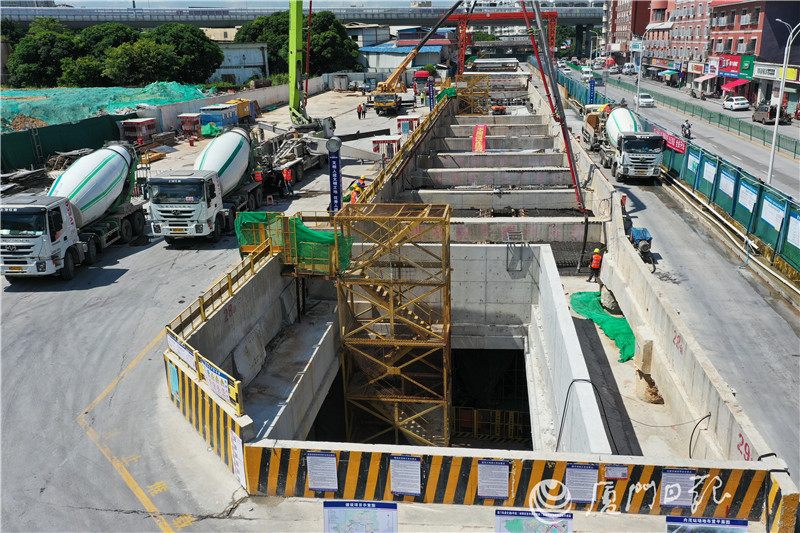 厦门网讯 (厦门日报记者 林钦圣 摄影 王协云)8月11日上午,随着最后一块顶板混凝土浇筑完成,内茂站主体结构顺利封顶,标志着6号线林埭西至华侨大学段工程全线13座车站主体结构全面实现封顶。