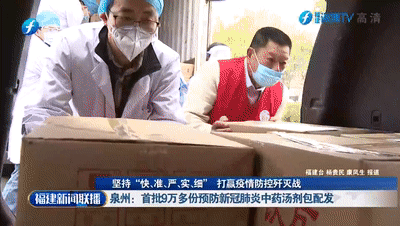 在泉州,首批9万多份预防新冠肺炎中药汤剂包3月24日配发给封控区一线工作人员和居民。