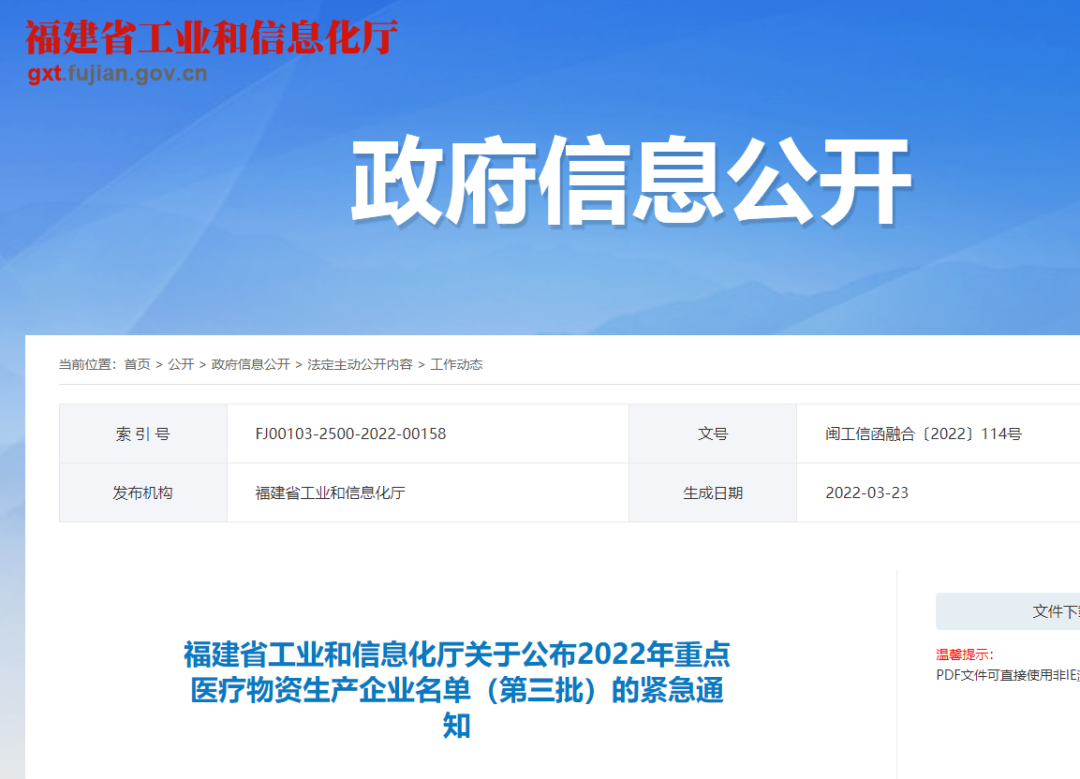 福建省工信厅下发紧急通知