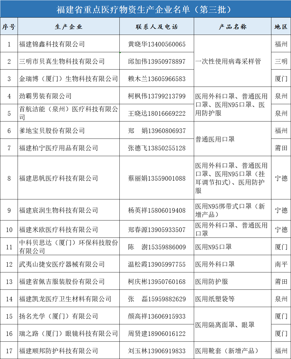 福建新增17家重点医疗物资生产企业
