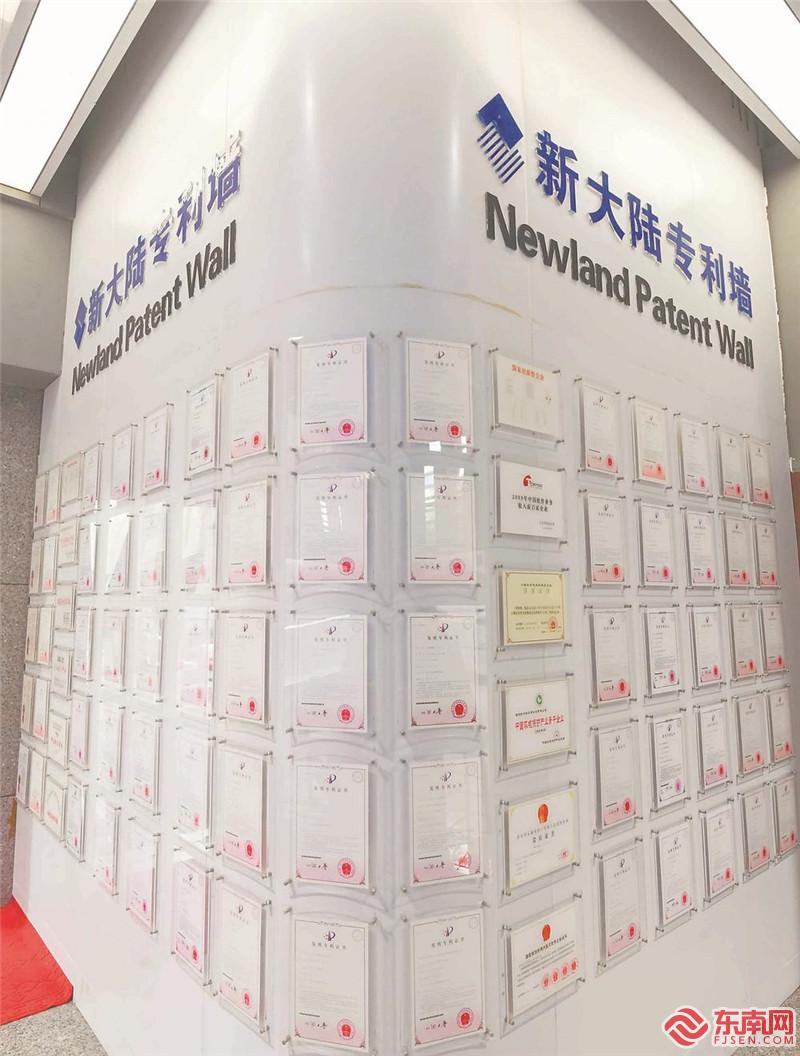布满发明专利证书的新大陆专利墙。福建日报记者 游庆辉 摄