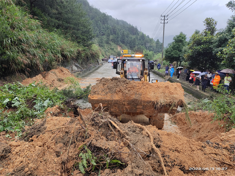 6月13日大田公路人在省道217线汤泉路段清理溜方(省交通厅供图)