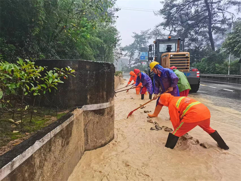 6月13日下午,闽清公路人在S308线云龙乡潭口村路段疏通边沟积水(省交通厅供图)