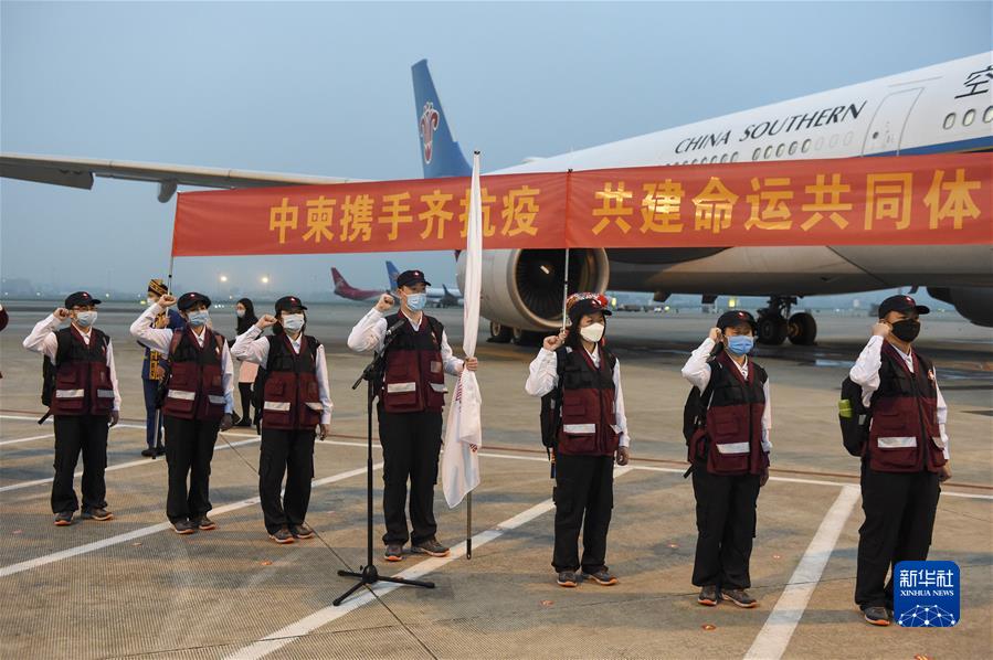 在南宁吴圩国际机场,广西壮族自治区卫健委选派的抗疫医疗专家组启程前往柬埔寨(2020年3月23日摄)。新华社记者曹祎铭摄