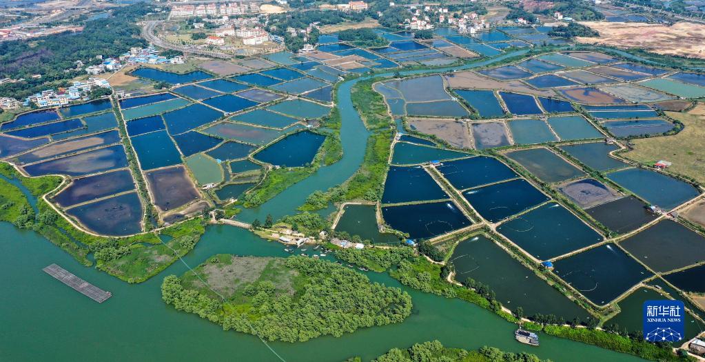 这是广西钦州市钦南区沙埠镇船埠环村的冬日虾塘景色(11月25日摄,无人机照片)。新华社记者张爱林摄