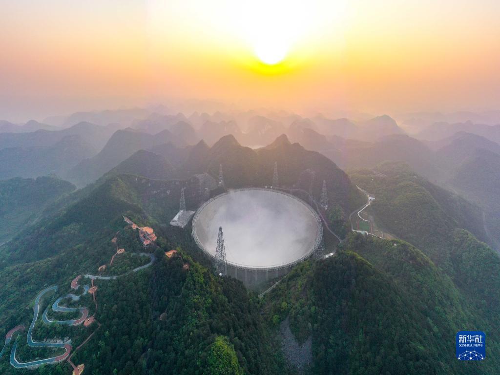 3月31日清晨拍摄的“中国天眼”全景(维护保养期间拍摄,无人机照片)。新华社记者欧东衢摄