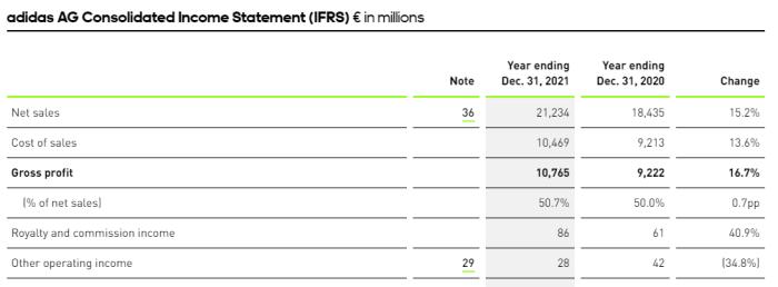 阿迪达斯部分财务数据。