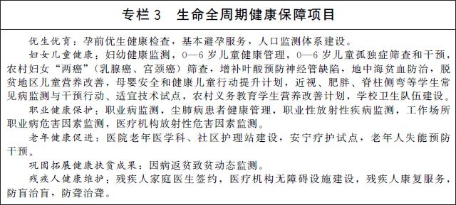 “十三五”时期,以习近平同志为核心的党中央把保障人民健康放在优先发展的战略位置,作出实施健康中国战略的决策部署。党中央、国务院召开全国卫生与健康大会,印发《“健康中国2030”规划纲要》。国务院印发《关于实施健康中国行动的意见》。各地各有关部门认真贯彻落实,扎实推进健康中国建设,启动实施健康中国行动,深入开展爱国卫生运动,持续完善国民健康政策。重大疾病防治成效显著,居民健康素养水平从10.25%提高到23.15%,人均基本公共卫生服务经费补助标准提高到74元,多数疫苗可预防传染病发病率降至历史最低水平,重大慢性病过早死亡率呈现下降趋势。重点人群健康服务不断完善,危重孕产妇和新生儿救治转运体系基本建立,儿童青少年近视监测和干预持续加强,老年健康与医养结合服务列入基本公共卫生服务。医药卫生体制改革深入推进,公立医院综合改革全面推开,药品和医用耗材加成全部取消,二级以上公立医院绩效考核全面实施;职工基本医疗保险、城乡居民基本医疗保险政策范围内住院费用支付比例分别稳定在80%和70%左右;基本药物数量从520种增加到685种,药品集中带量采购改革形成常态化机制,国家集中采购中选药品价格平均下降53%;医疗卫生服务体系不断完善,分级诊疗制度建设有序推进;社会办医稳步发展,健康产业规模显著扩大。健康扶贫任务全面完成,832个脱贫县县级医院服务能力全面提升,远程医疗服务覆盖全部脱贫县并向乡镇卫生院延伸,历史性消除脱贫地区乡村医疗卫生机构和人员“空白点”;大病专项救治病种扩大到30种,高血压等4种慢性病患者优先纳入家庭医生签约服务,2000多万贫困患者得到分类救治,近1000万因病致贫返贫户成功脱贫,基本医疗有保障全面实现。中医药服务体系持续完善,独特优势日益彰显。
