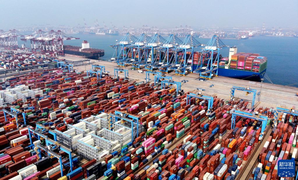 山东港口青岛港前湾集装箱码头(3月24日摄,无人机照片)。新华社记者李紫恒摄