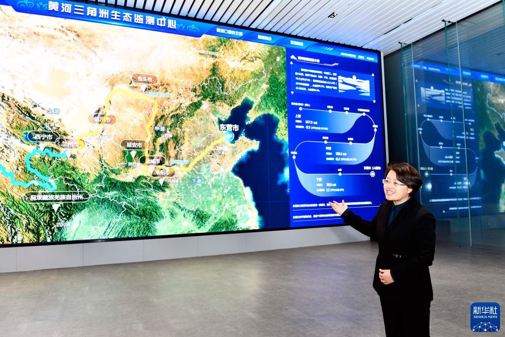 山东黄河三角洲国家级自然保护区生态监测中心主任刘静在介绍相关情况(2021年10月20日摄)。新华社记者郭绪雷摄