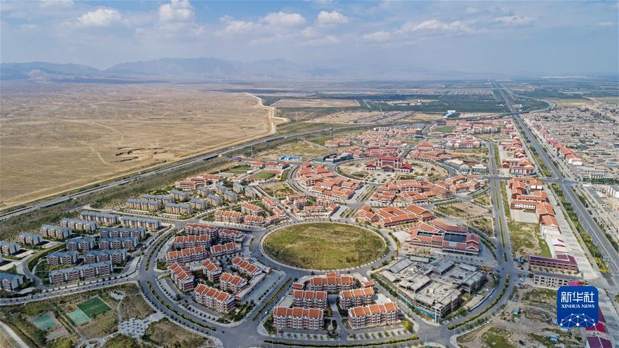 这是宁夏银川市永宁县闽宁镇新镇建设全景(2019年9月3日摄,无人机照片)。新华社记者王鹏摄