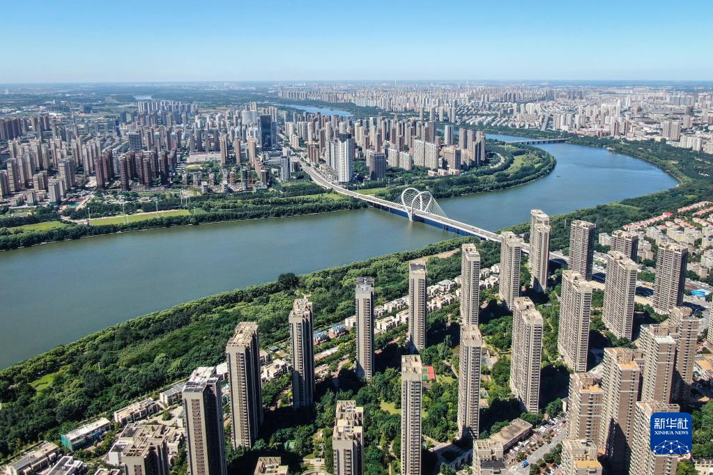 沈阳市浑河两岸风光(无人机照片,2022年8月23日摄)。新华社记者潘昱龙摄